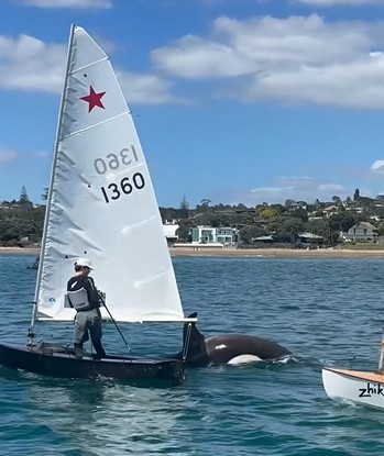 Orcas attempt to join training session at Murrays Bay Sailing Club