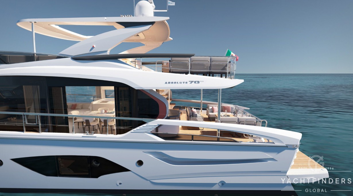 Step aboard the all-new Absolute 70 FLY and experience a yacht that redefines elegance at sea. With sweeping glass panels for panoramic views, a sleek flybridge, and a revolutionary stern platform that slides effortlessly into the water, this masterpiece blends cutting-edge design with ultimate comfort. Every detail—from space optimization to atmospheric lighting—has been crafted to elevate your time on the water. The 70 FLY isn’t just a yacht; it’s your gateway to unforgettable adventures.